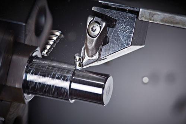 Desenvolvida em conjunto pela Mori Seiki e Kennametal, a ferramenta rotativa de torneamento foi projetada para dispersar calor e resistir mais que um inserto de torneamento comum. Ela utiliza um inserto parecido com um inserto circular que é montado no fundo de um suporte cilíndrico preso a um spindle giratório.