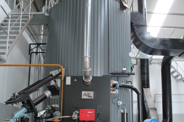 Uma caldeira de tubo de fogo vertical, que é menos eficiente, é mais comumente encontrada em automóveis anteriores a vapor ou barcos, e em algumas locomotivas, mas são raramente encontrados em vagões a vapor. Uma caldeira de tubo de fogo consiste de um volume de água no interior do reservatório com tubos verticais ocos que atravessam ele. Gases de um queimador de baixo fluxo atravessam os tubos, e a tubagem aquecida gera calor suficiente para gerar vapor. Caldeiras de tubos de água são exatamente o oposto, porque a água percorre os tubos, que são aquecidos pelas chamas em torno deles.